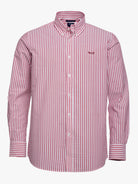 Camisa Regular Fit Seersucker Vermelha Algodão Riscas Com logo