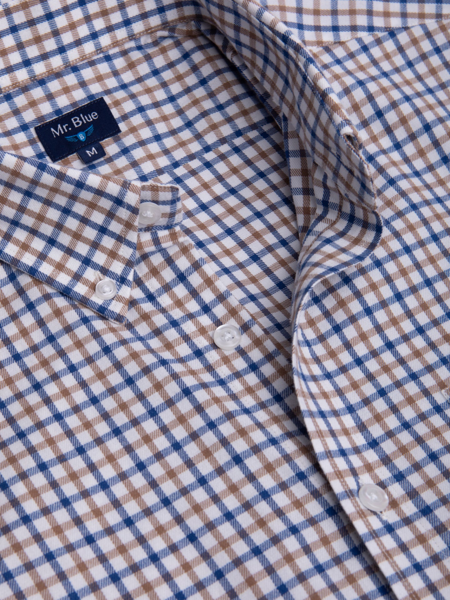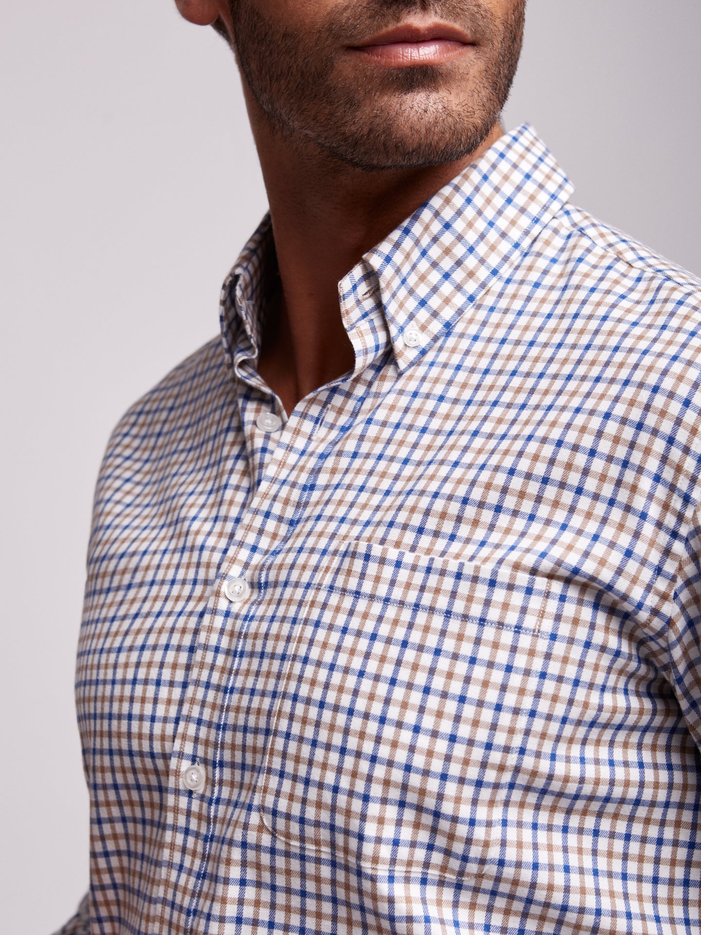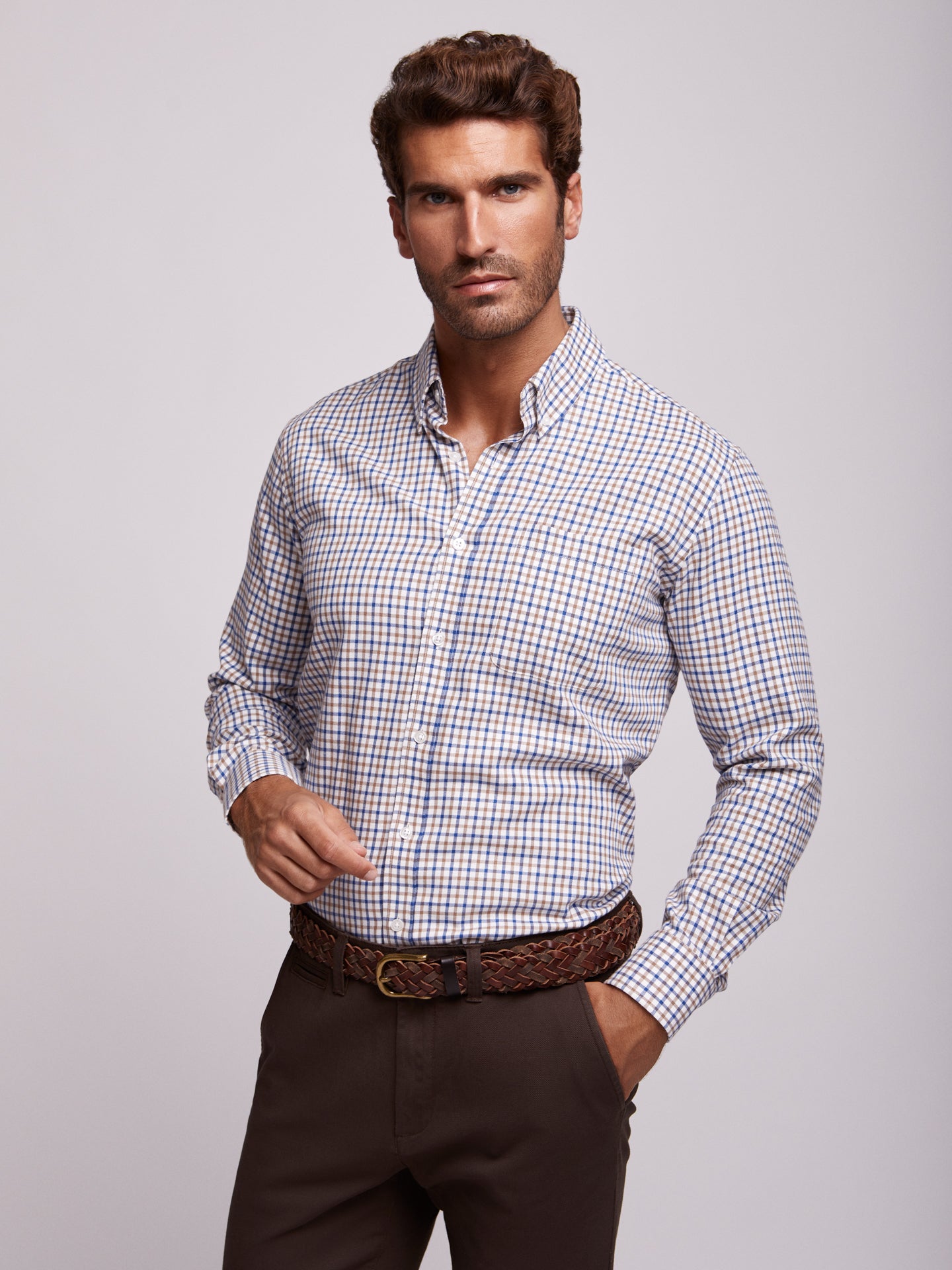 Camisa Regular Fit Azul Manga CompridaManga Comprida Quadrados
