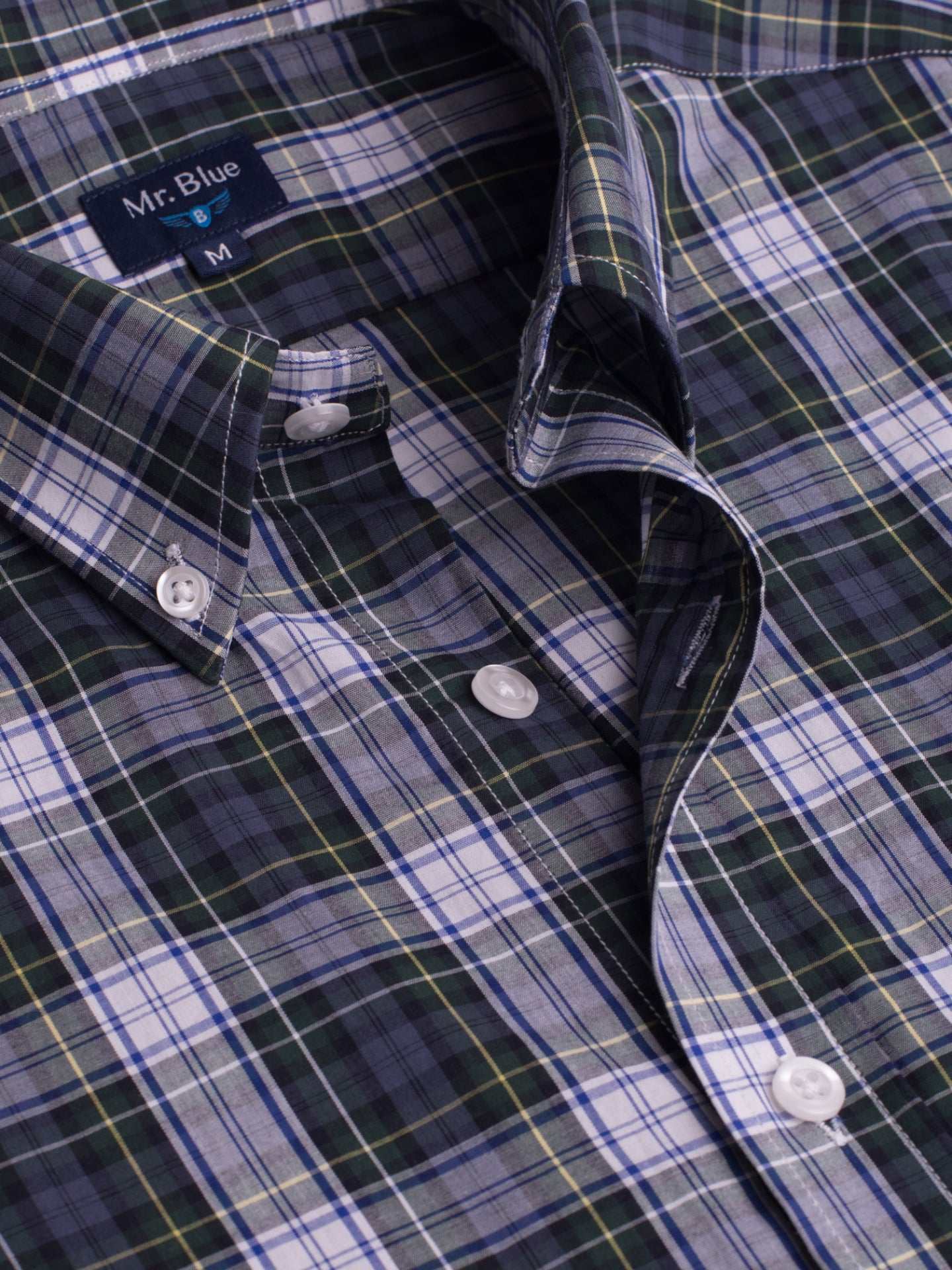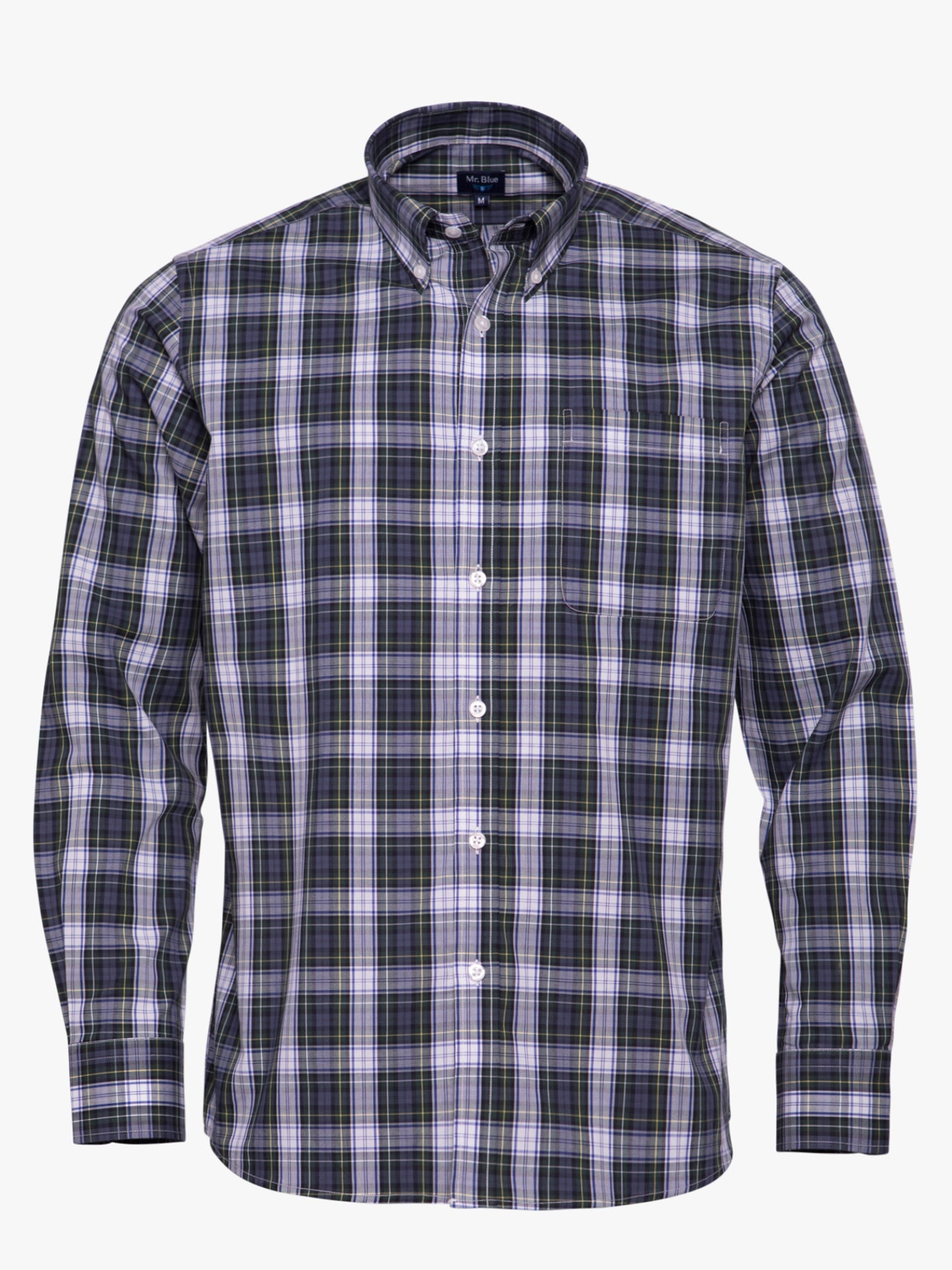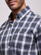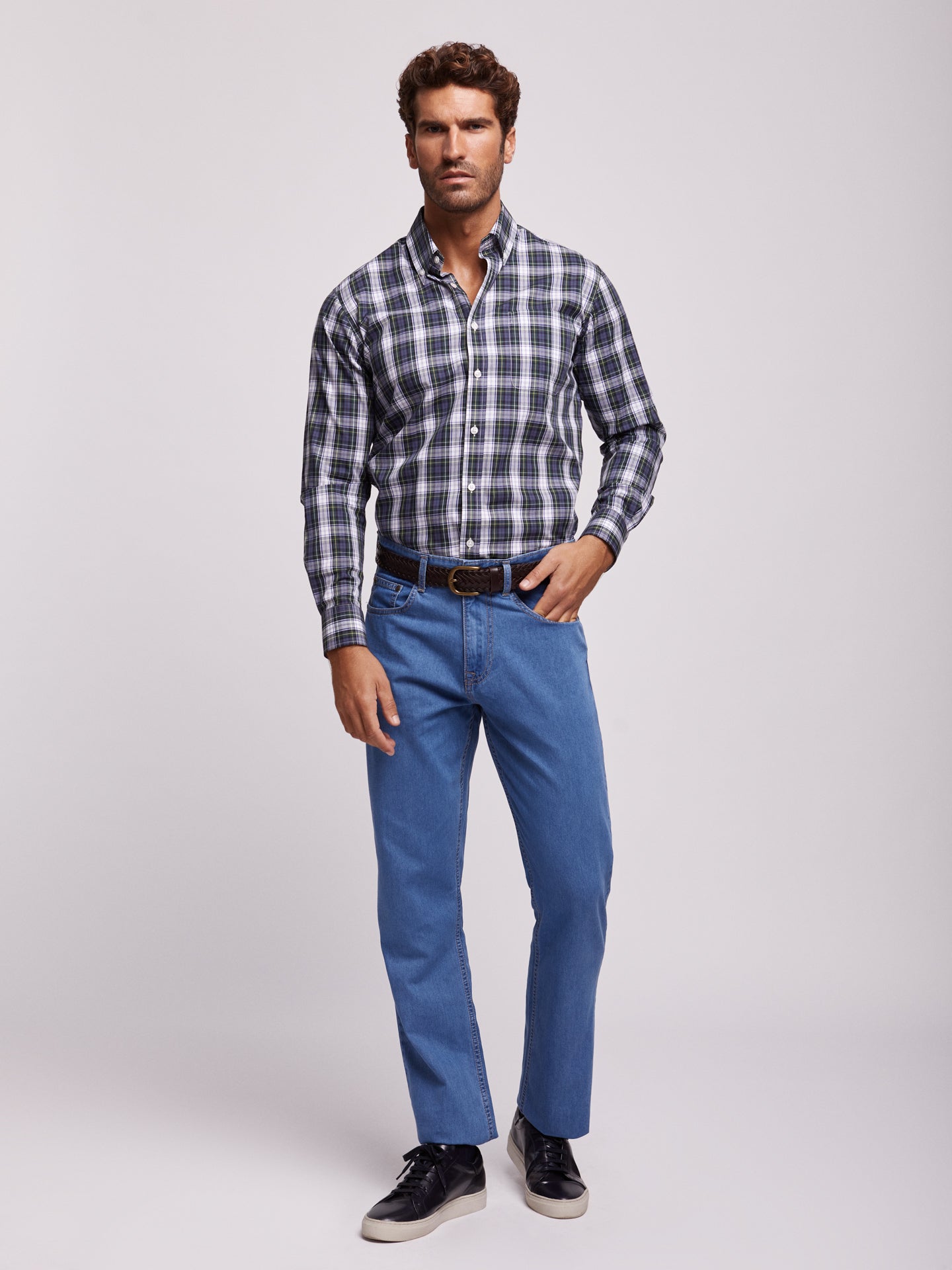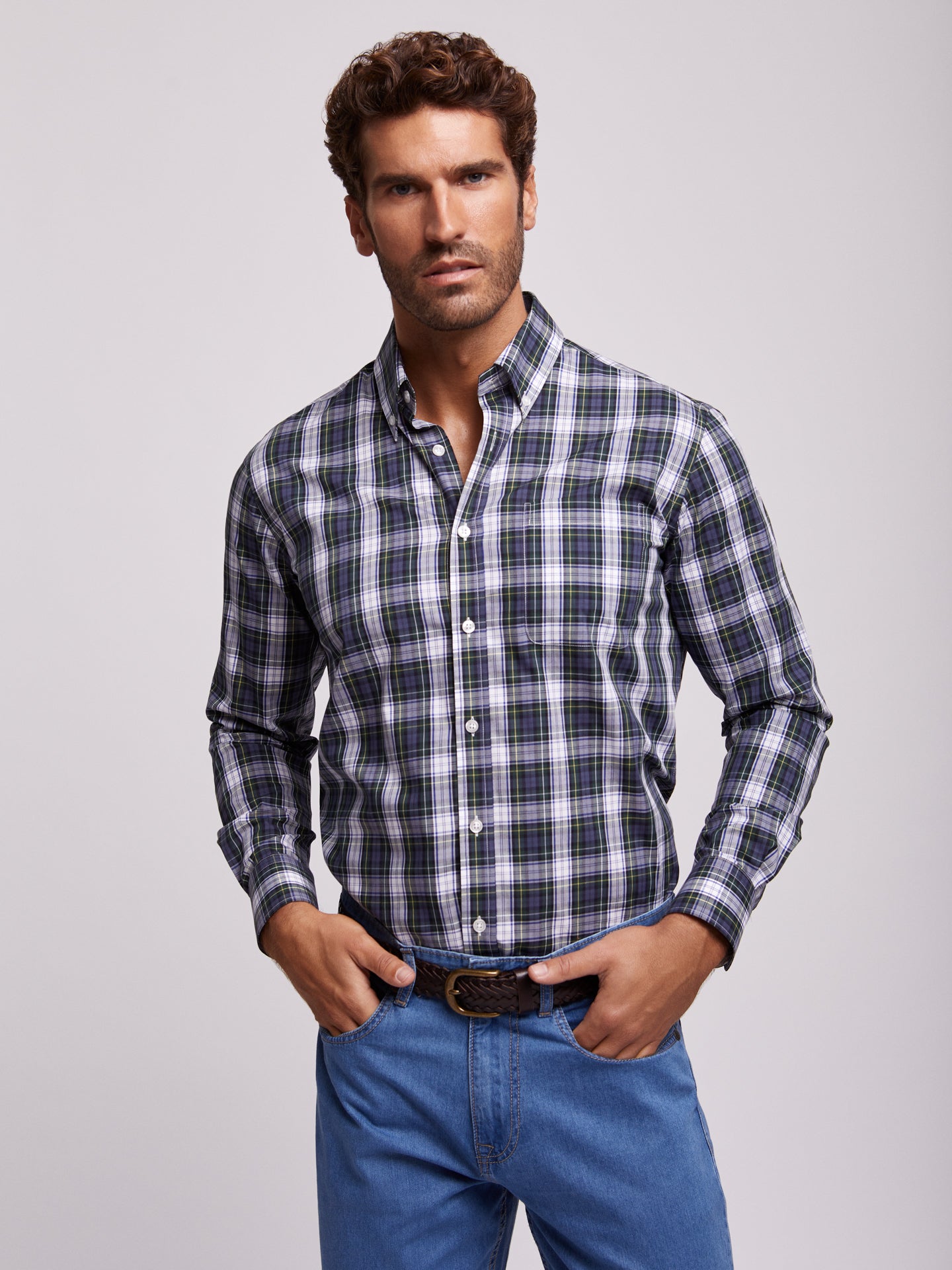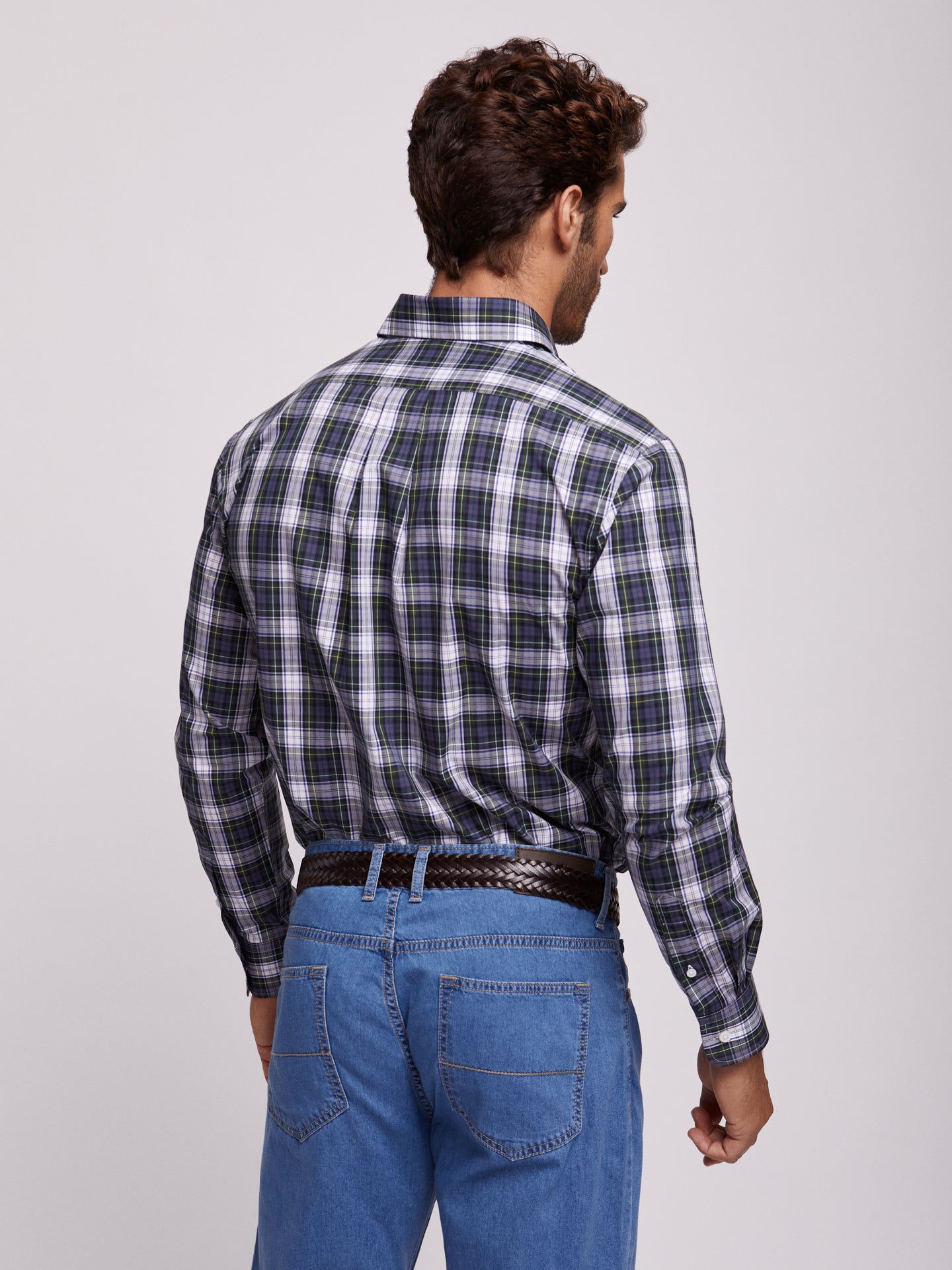 Camisa Regular Fit Azul Manga CompridaManga Comprida Quadrados