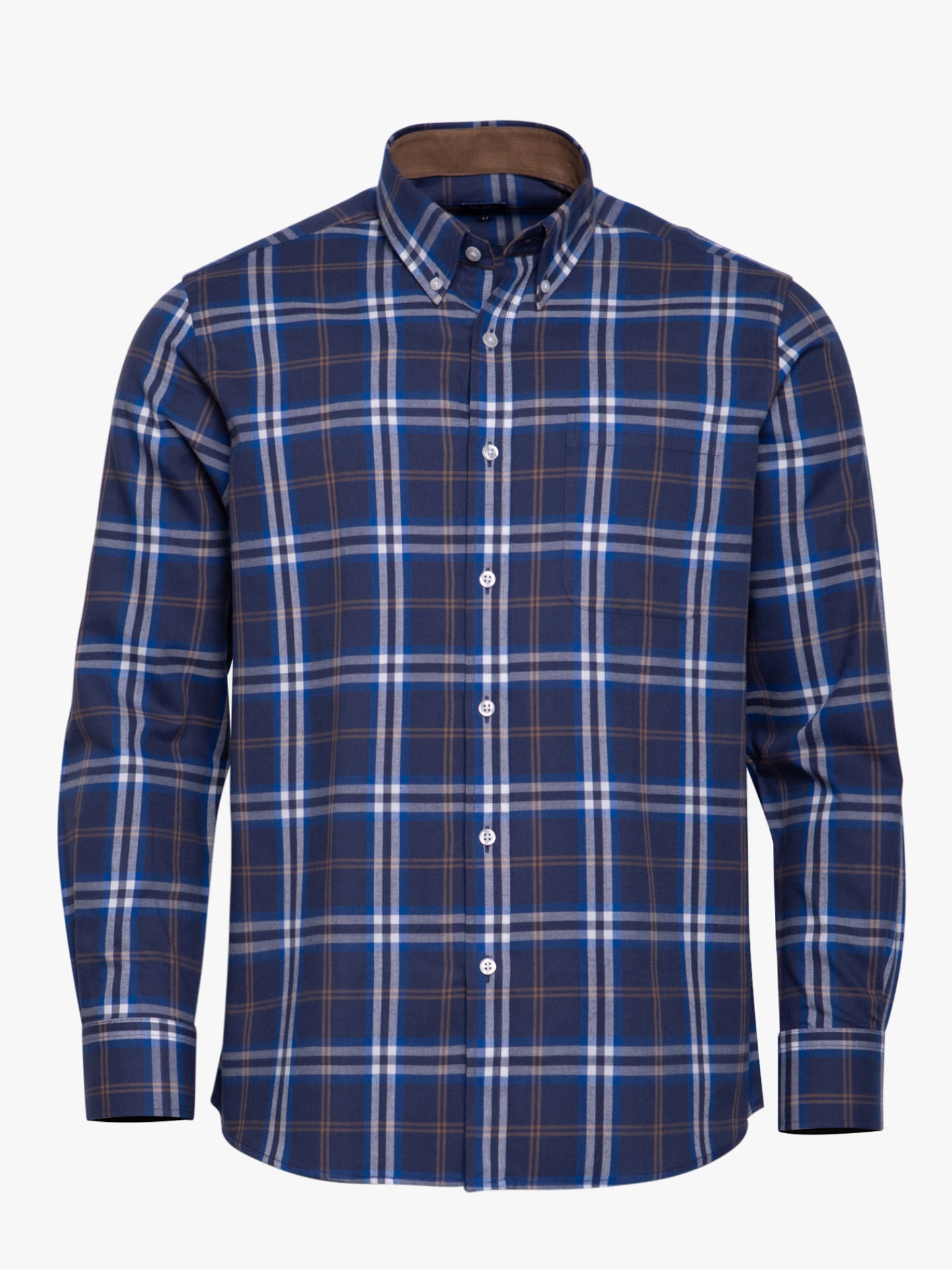 Camisa Regular Fit Azul Manga CompridaManga Comprida Quadrados
