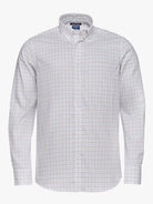 Camisa Regular Fit Bege Quadrados Com Bolso