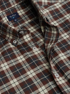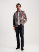 Camisa Regular Fit Flanela Castanha Manga Comprida Com Bolso Com Quadrados