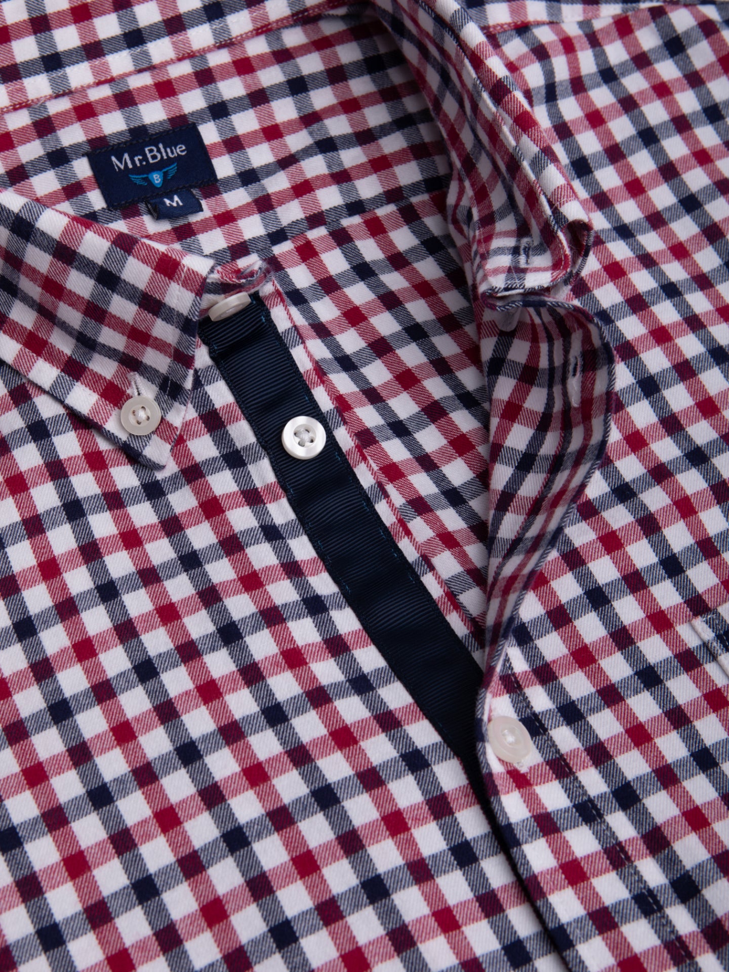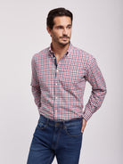 Camisa Regular Fit Vermelha Manga CompridaManga Comprida Quadrados
