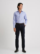 Camisa Slim Fit Twill Azul Algodão Liso