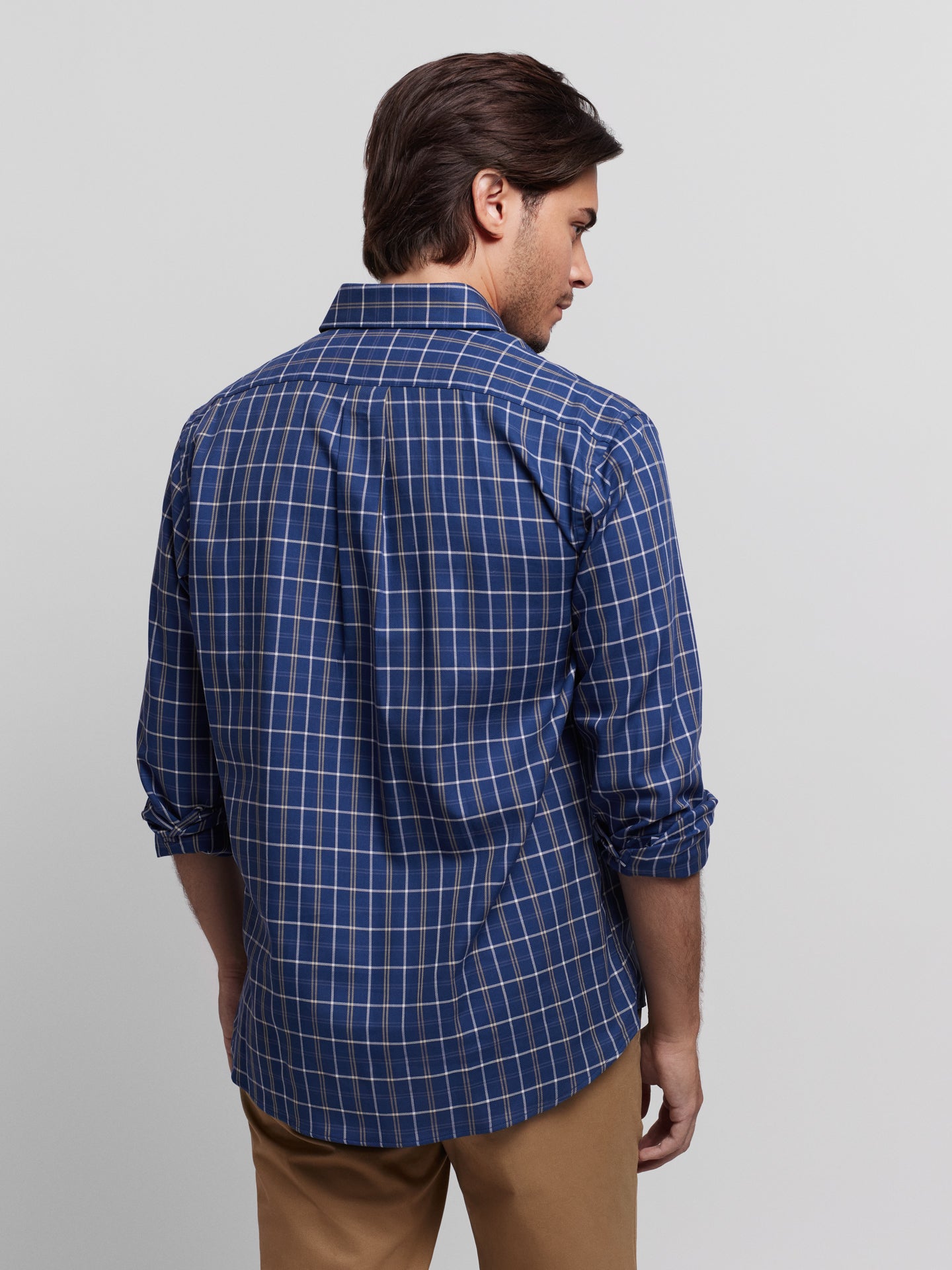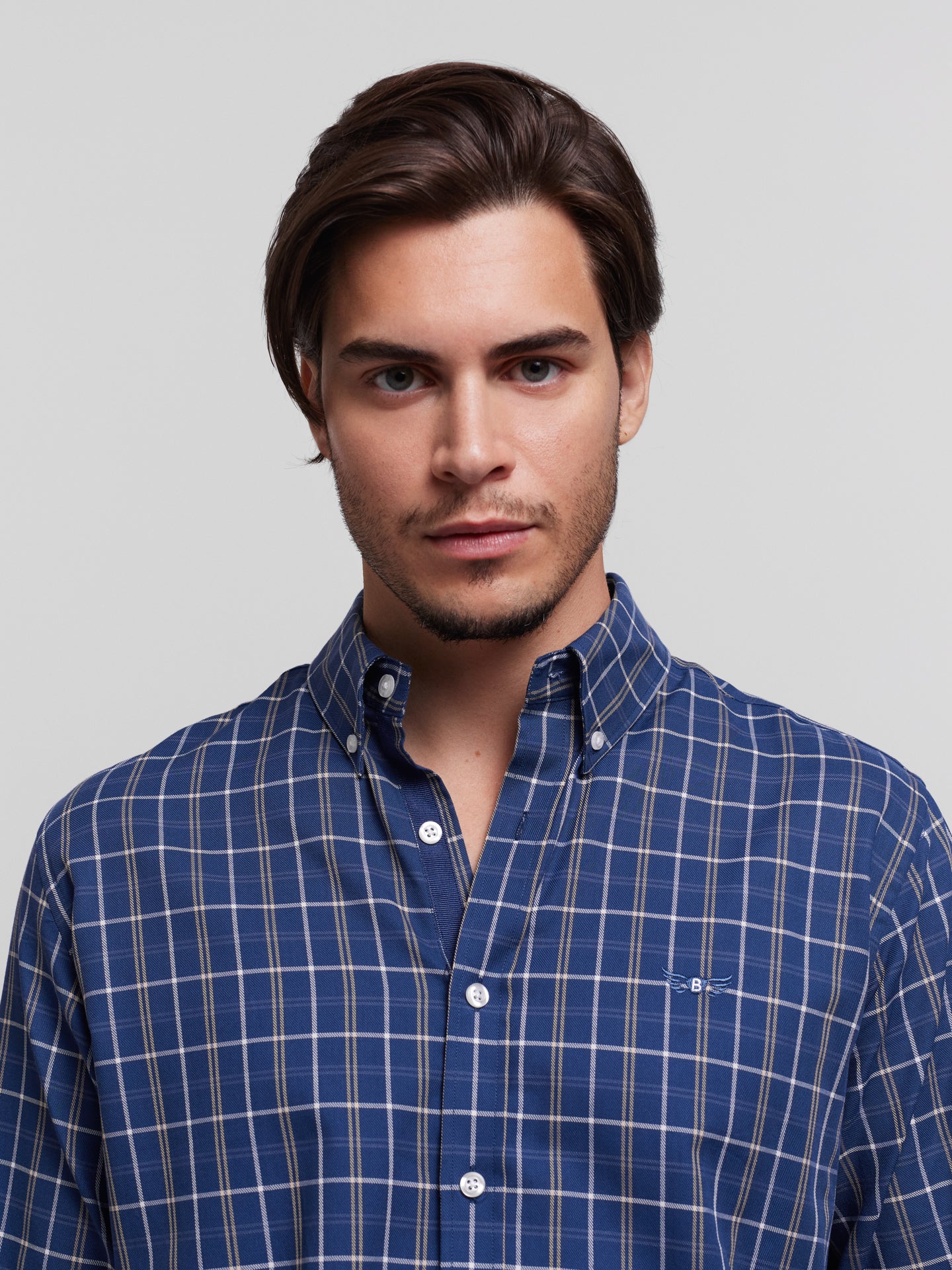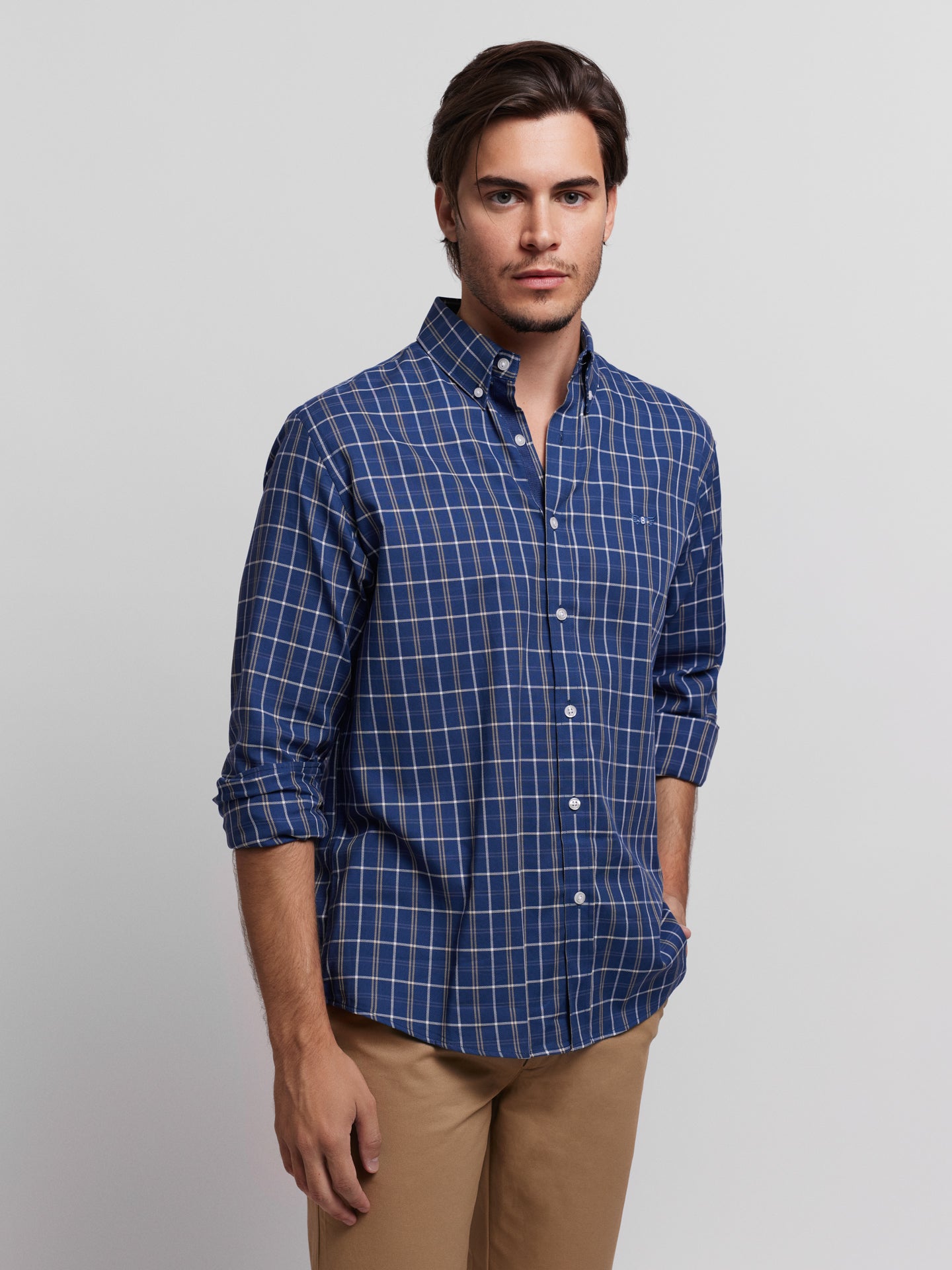 Camisa Regular Fit Azul Manga CompridaManga Comprida Quadrados Com Logo