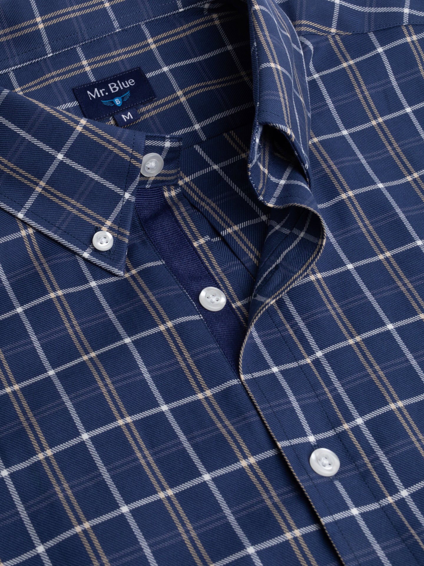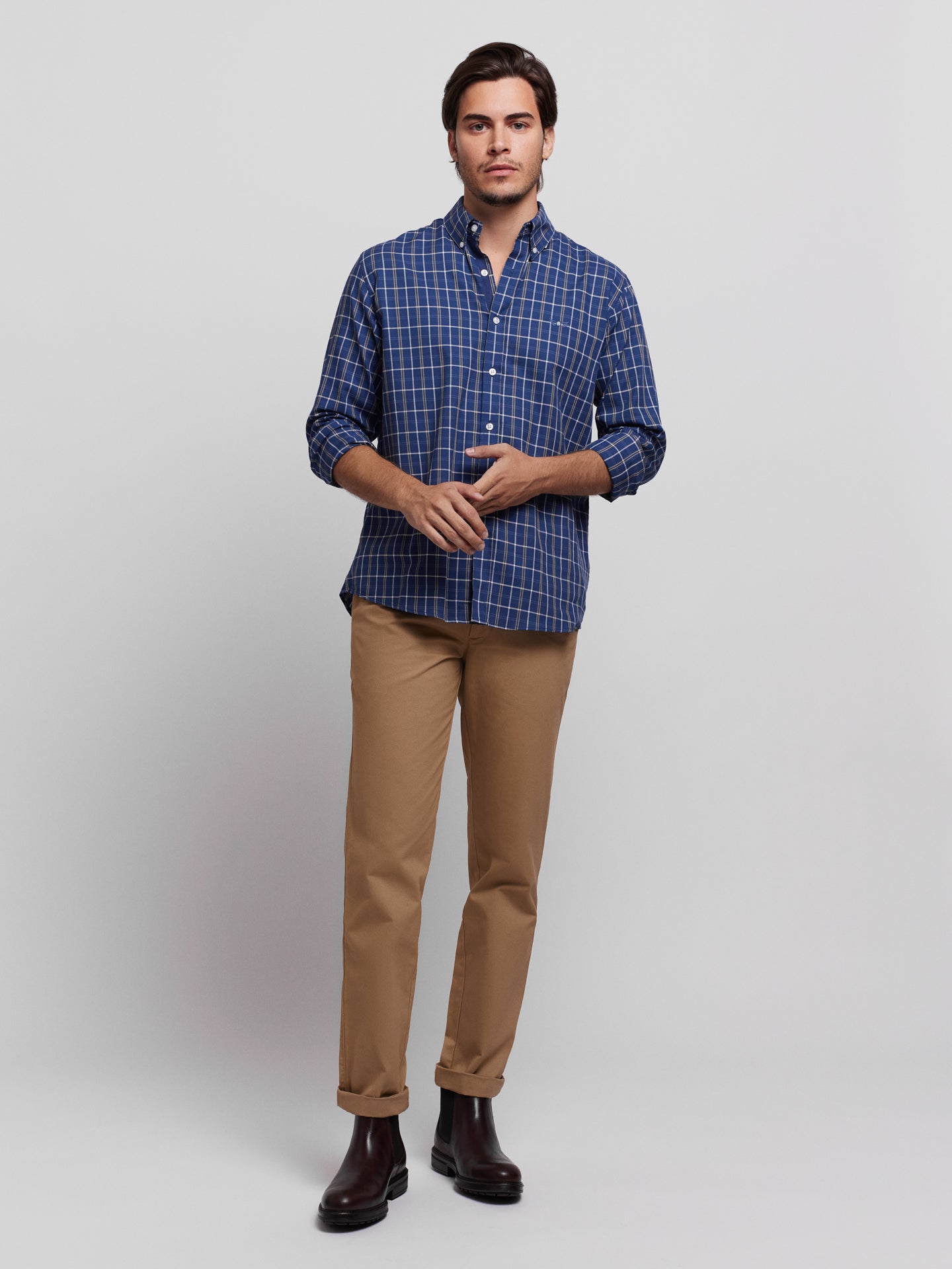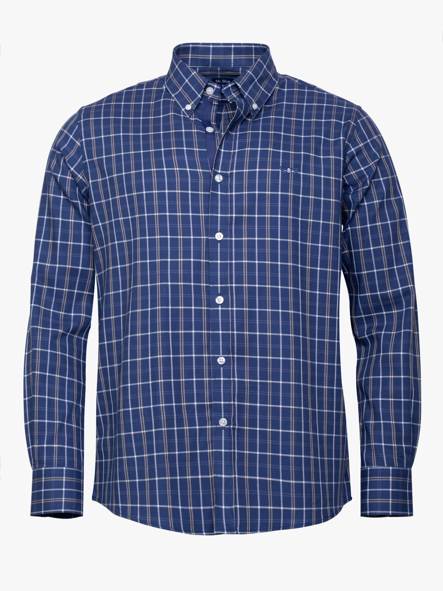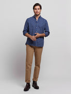 Camisa Regular Fit Azul Manga CompridaManga Comprida Quadrados Com Logo