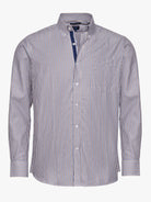 Camisa Regular Fit Twill Azul Algodão Riscas Com bolso