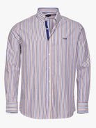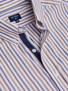 Camisa Regular Fit Oxford Bege Algodão Riscas Com logo