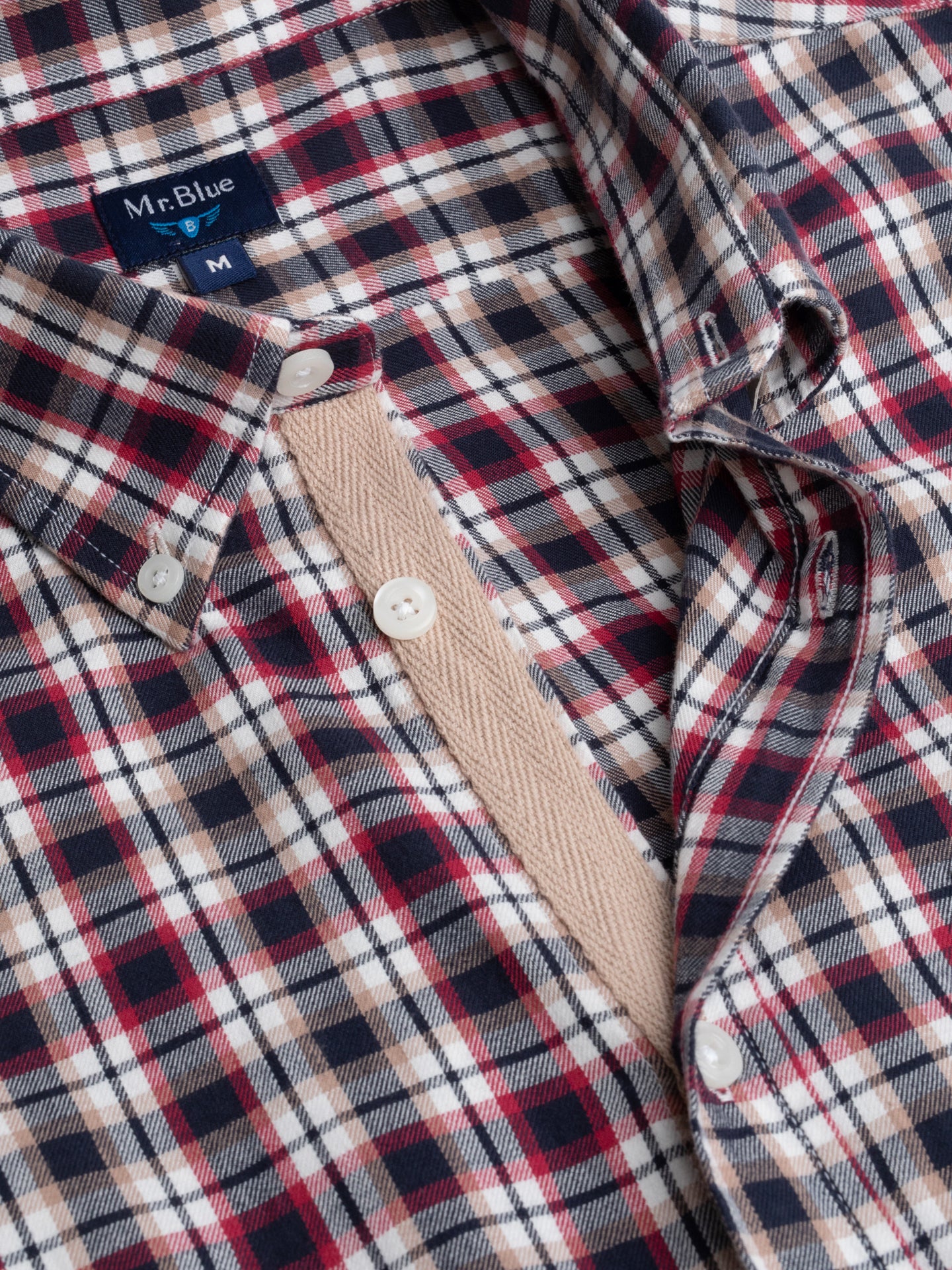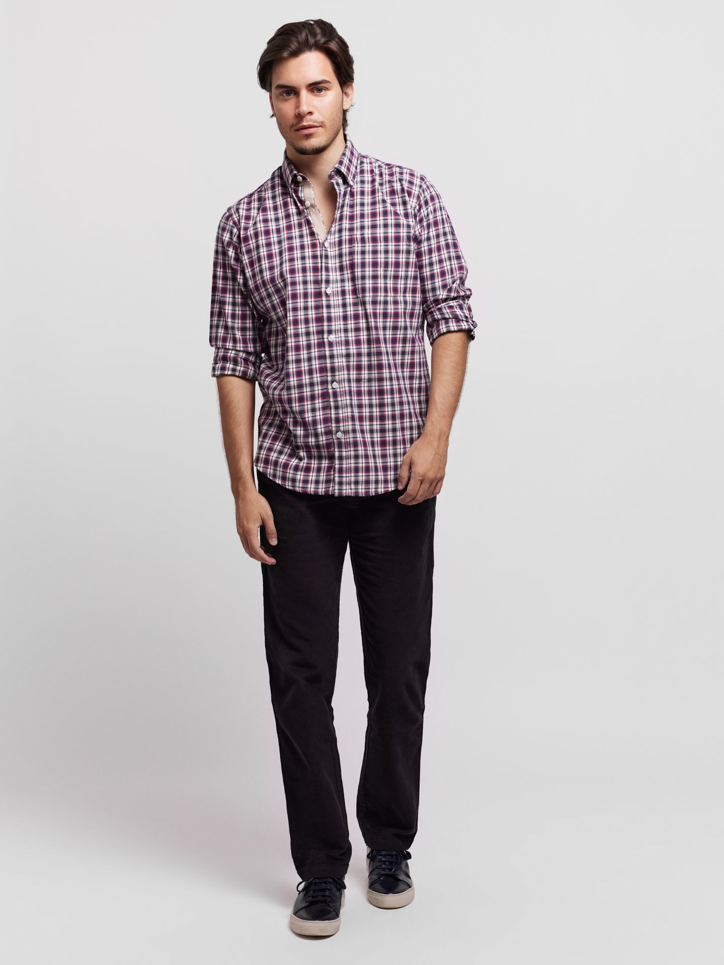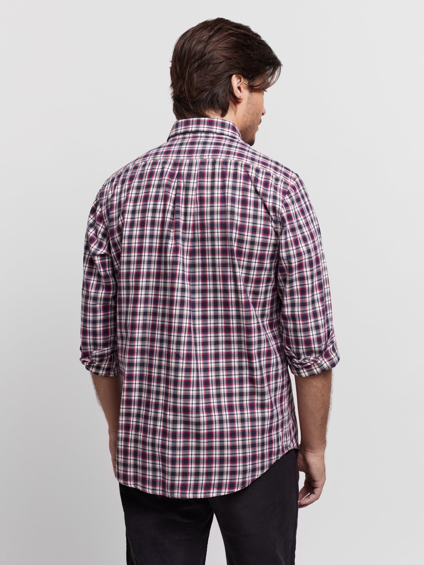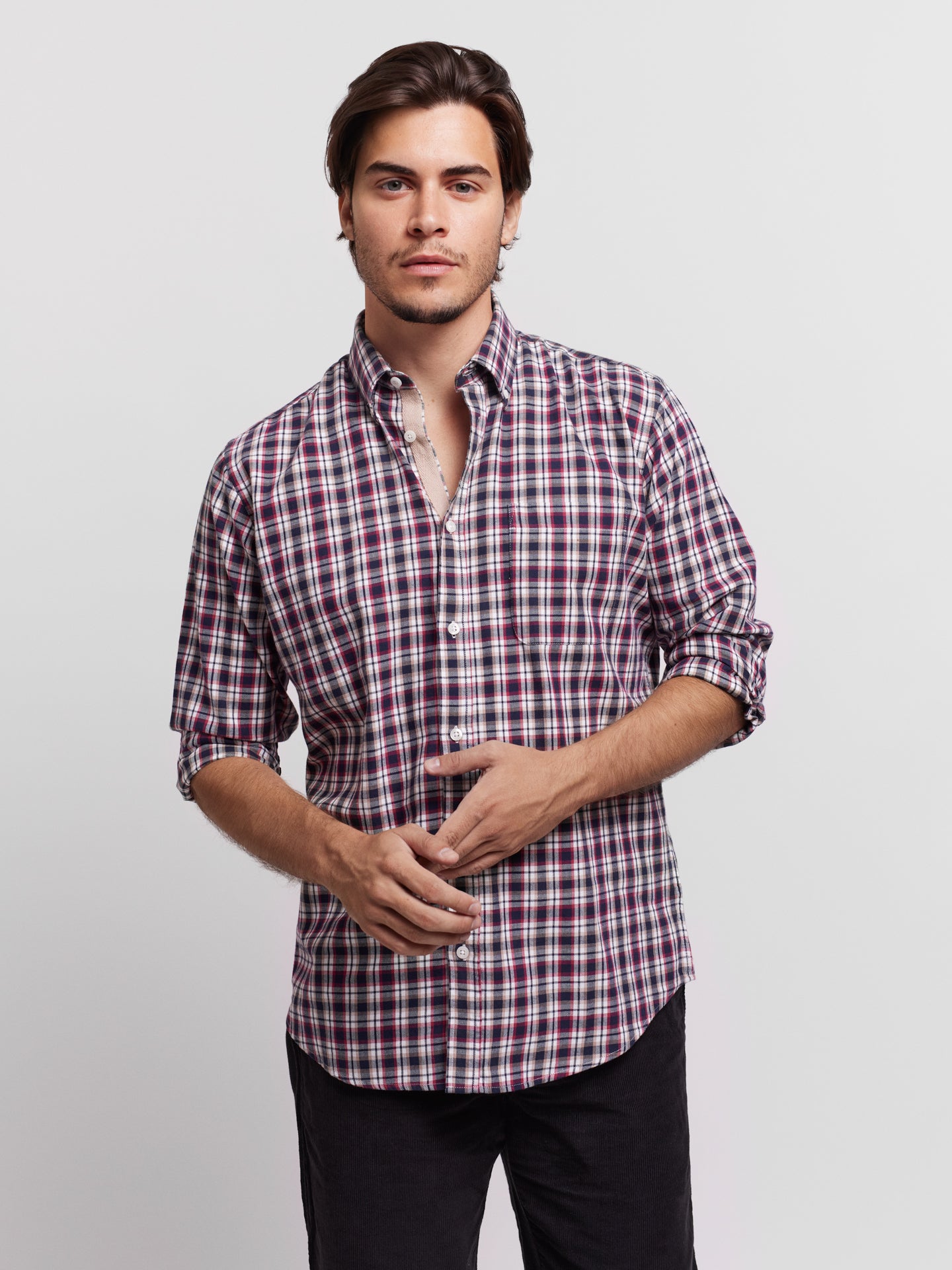 Camisa Regular Fit Vermelha Manga CompridaManga Comprida Quadrados Com Bolso