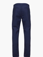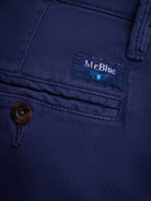 Calças chino para homem azul intermédio confecionadas em tecido algodão. Corte slim, fecho de botão e fecho de correr oculto por carcela, dois bolsos laterais, dois bolsos com casa de botão abotoados atrás e presilhas para cinto. Interior cós com padrão.