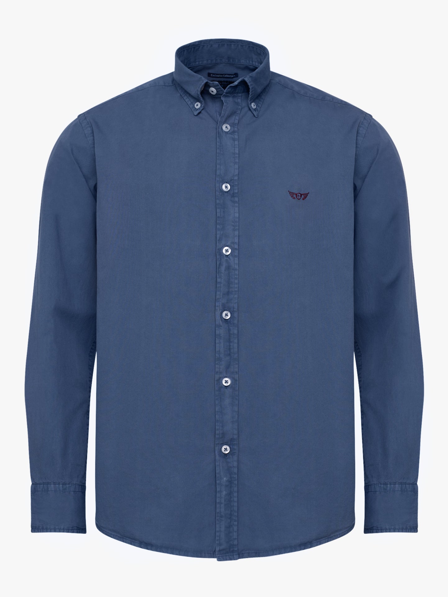 Camisa Regular Fit Popelina Azul Manga Comprida Com logo