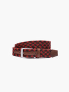 Cinto elástico Homem castanho e vermelho. Peça muito versátil para combinar com as várias opções de calças.