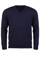 Pullover Homem algodão e caxemira decote em V azul escuro com interior colarinho e cotoveleiras em camurça camel. Peça indespensável no seu guarda roupa. Ideal para um fim de semana ou um dia de trabalho descontraído. Ideal para usar com uma Camisa Homem.