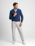 Camisola de Algodão e Caxemira Azul fina com Decote em V