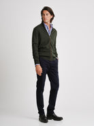 Pullover Lã Merino Fino Verde Lã Merino Liso