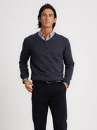 Pullover Lã Grosso Azul Lã Liso Com logo