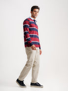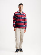 Rugbie Regular Fit Bordeaux De Algodão Manga Comprida Com Riscas e Com Logo