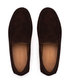 Um clássico desportivo para os apreciadores de sapatos sem atacadores. Este modelo venitian é feito a partir de camurça castanho escuro com sola de borracha e é o modelo que vai querer usar nos dias mais quentes.