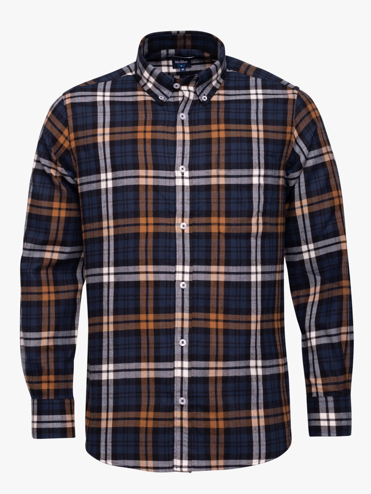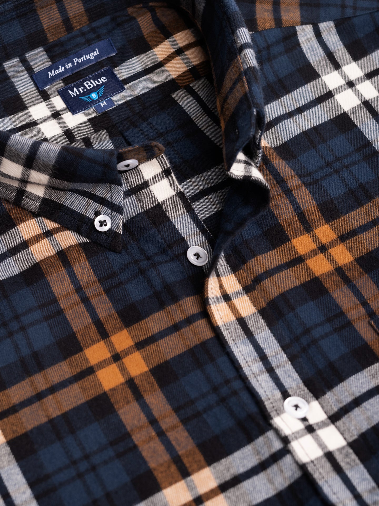 Camisa Regular Fit Flanela Azul Algodão Quadrados