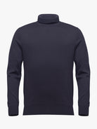 Camisola para homem gola alta lisa preto. Confecionada em tecido de algodão e lã merino. Corte reto, gola alta, manga comprida e acabamentos canelados.